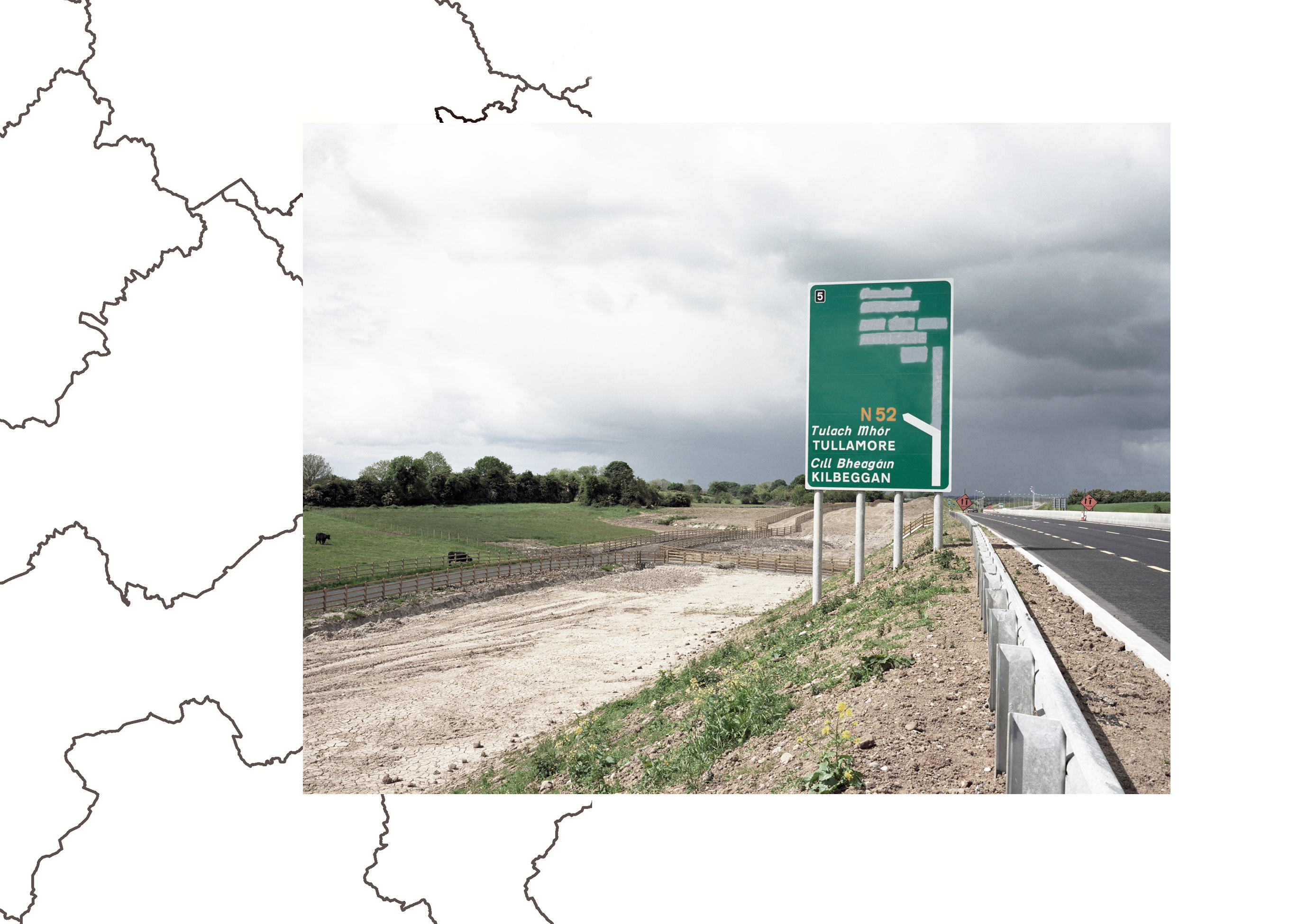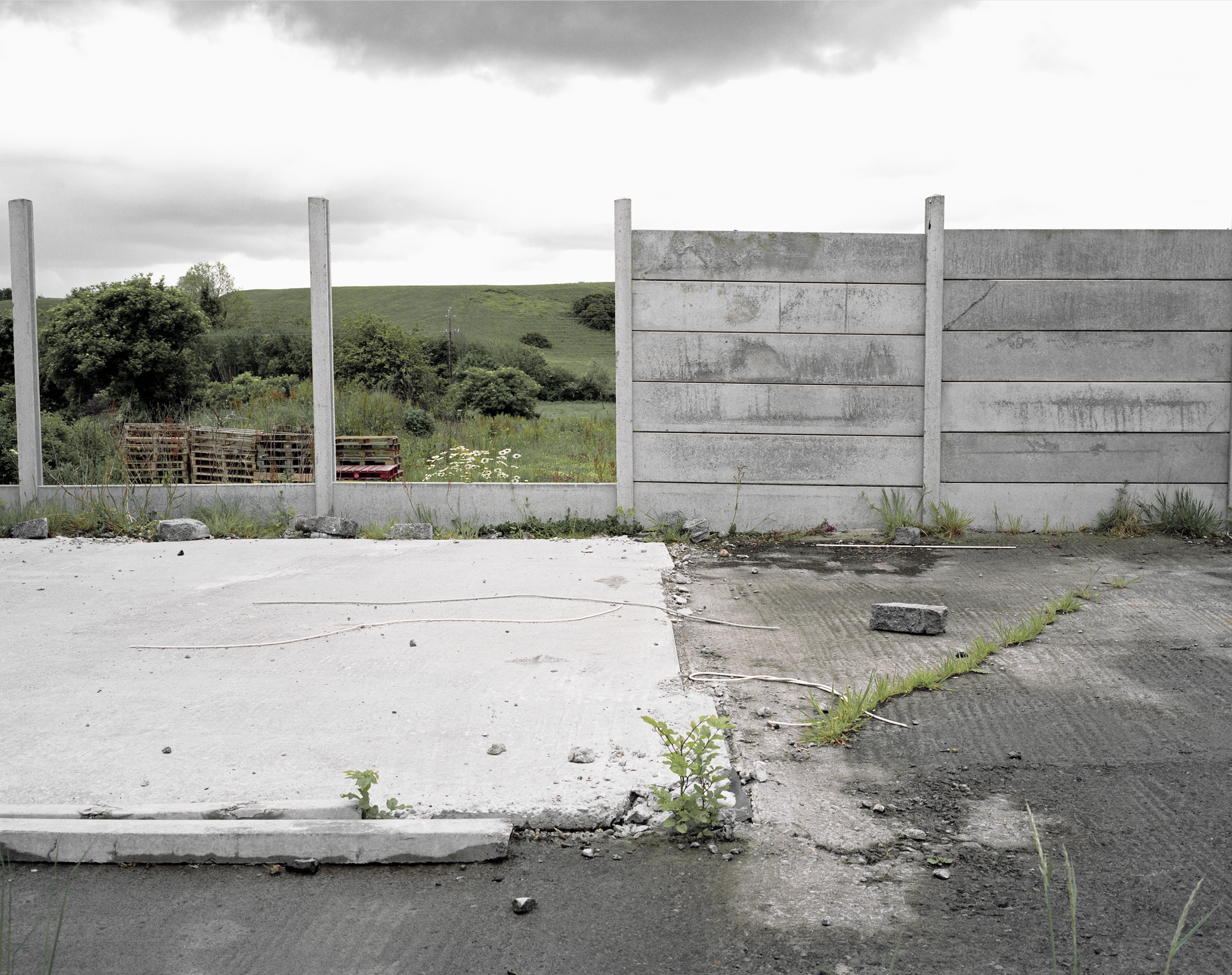 Midlands charts the construction of the Irish midlands region from the height of the Irish economic boom in the early part of the decade, to the economic insecurities and uncertainties of recession times. The work focuses on the concept of what the concept of ‘The Midlands’ is in its essence - non-defined, non-geographic, non-place. It charts the confident thrust of building activity which was undertaken in the region after the implementation of The National Spatial Strategy (2002 - 2020) which, it was anticipated, would lead to a dynamic transformation in the region itself, generating business and providing homes which would lay claim to community. This dream however has not materialised. In the rural mid-land areas, the factories which promised to hum with productivity now lay dormant, the houses which promised security lay helplessly unoccupied. In the context of recession, these structures are stripped of the aura of hope they once had - laying bare a certain reality of the unstable nature of the country’s current economic situation.